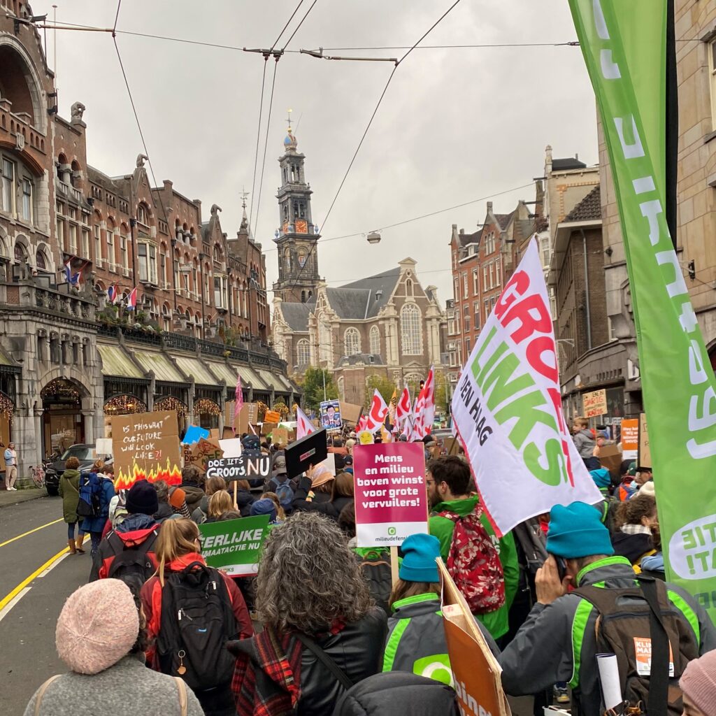 Wij, van Aardewijs, zijn niet van het op straat protesteren maar waren er toch bij in ’81 en ‘83. Als alle leven in grote mate wordt bedreigd, wordt toekijken onverdraaglijk. Zo is dat ook met het huidige geweld dat de mensheid de Aarde aandoet. Opnieuw voelden we ons op 6 november j.l. geroepen in Amsterdam te gaan betogen. Meer dan 40.000 gelijk gezinden zorgden voor een vreedzame en bezorgde schreeuw om “actie, actie, actie” in plaats van “bla, bla, bla”. In de eerste plaats in Nederland waar de politiek/overheid het tot nu toe ernstig af laat weten. Voortdurend wordt niet uitgevoerd wat volgens vastgestelde plannen zou moeten en handelt men in strijd met wetgeving. Maar ook was deze Klimaatmars een oproep aan alle wereldleiders bijeen in Glasgow om te besluiten tot effectieve en snelle ingrepen.
